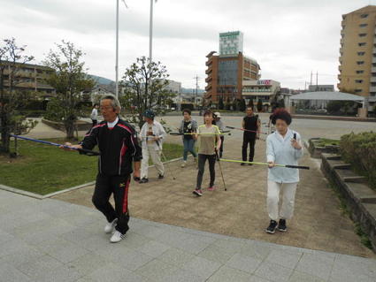今日はJR住道駅横の末広公園で6月発売のマイティポールの体験会を行ないました。 ほとんどがポール初体験の方でご夫婦や友達同士で仲良く参加いただきました。 講習会の後半に雨が振り出し、お店までの歩行練習は中止になったことが残念でした。 今回主催のドラッグストアアカカベ住道店ではスポーツコーナーもあり、ポール、シューズ、ウエアも充実しています。 是非、お立ちよりください。 問い合わせ先:アカカベスポーツ 072-869-4193