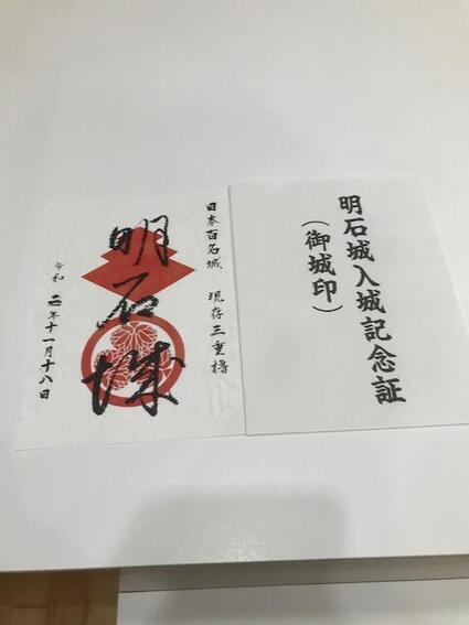今回は、ほとんどの方が明石城の歩行を楽しみにされていたので、明石店より「御城印」を参加者全員にプレゼントしました!